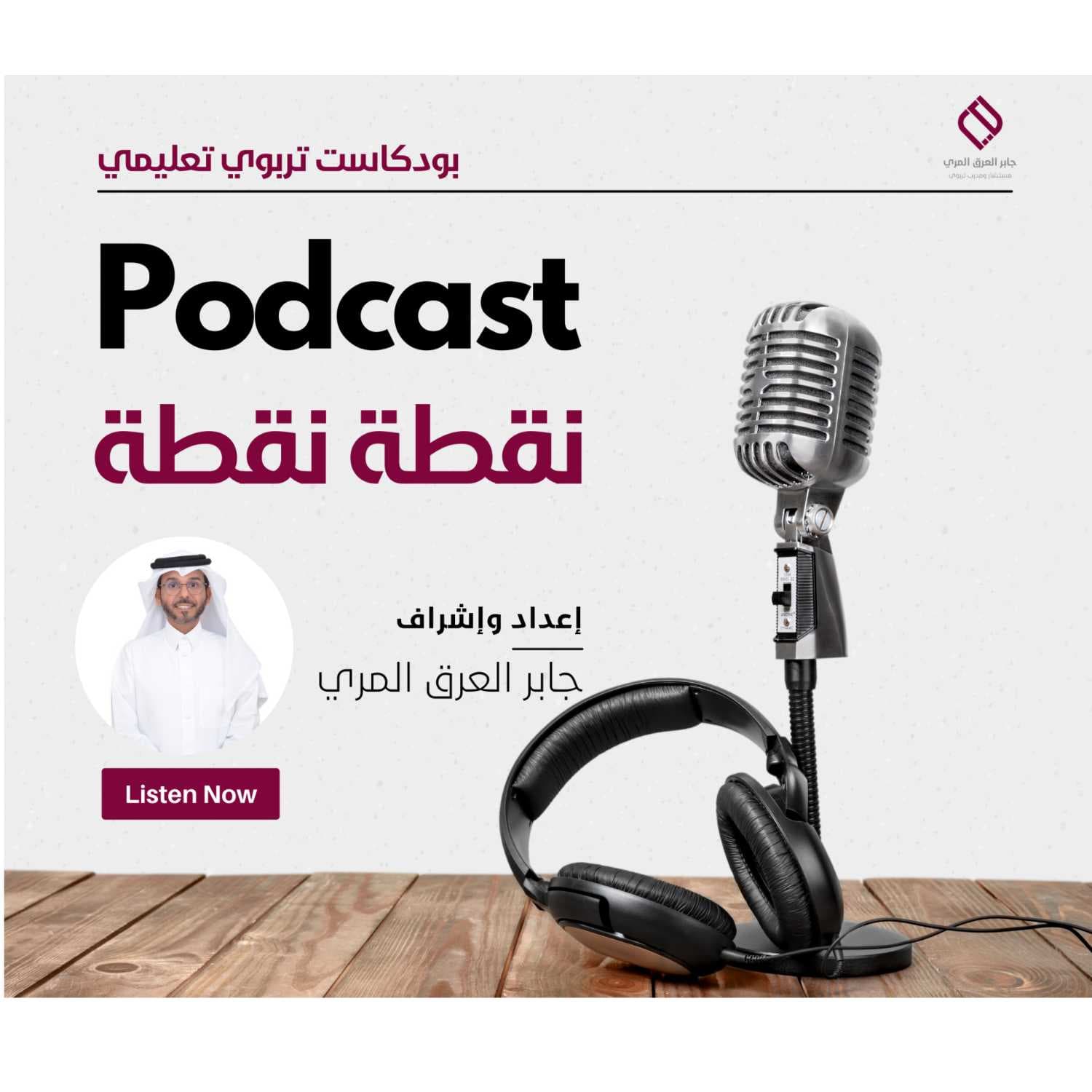 أهلا وسهلا فيكم في البودكاست التربوي (نقطة نقطة) هذا البودكاست إعداد وإشراف الأستاذ: جابر العرق المري هذا البودكاست صمم خصيصاً لكل أم وكل أم وكل مربي ومعلم يسعى لأن يبني جيل أفضل، ويتمكن من إخراج أفضل ما فيه لأني مؤمن أن أبناءنا كنوز عظيمة